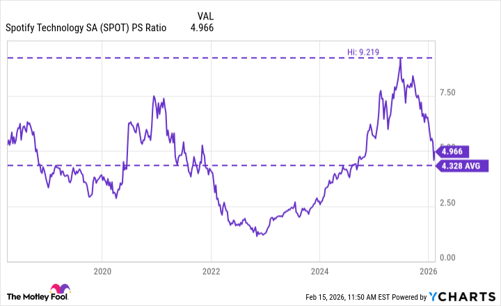 At its peak, Spotify’s price-to-sales ratio reached a rather alarming 9.2 – more than double its average since its public debut in 2018. However, the recent decline has brought it down to 4.9 – still a touch higher than the long-term average, but considerably more reasonable.