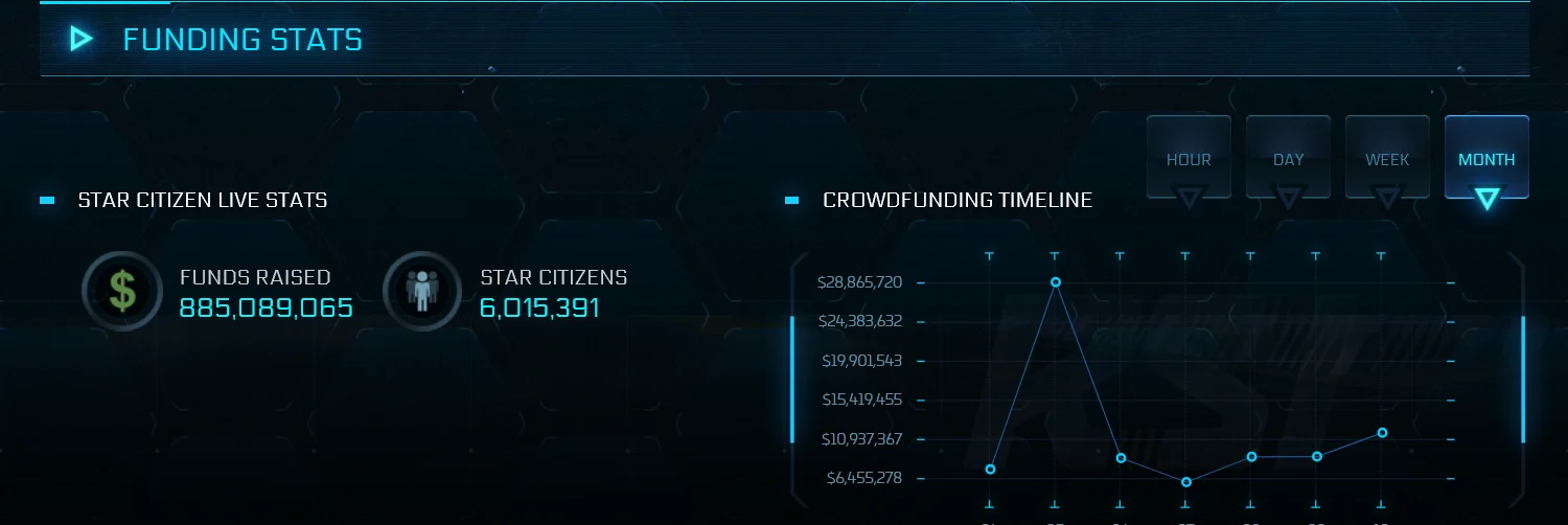 As of the latest data from Cloud Imperium Games, Star Citizen has now been funded with a total of over $885 million.