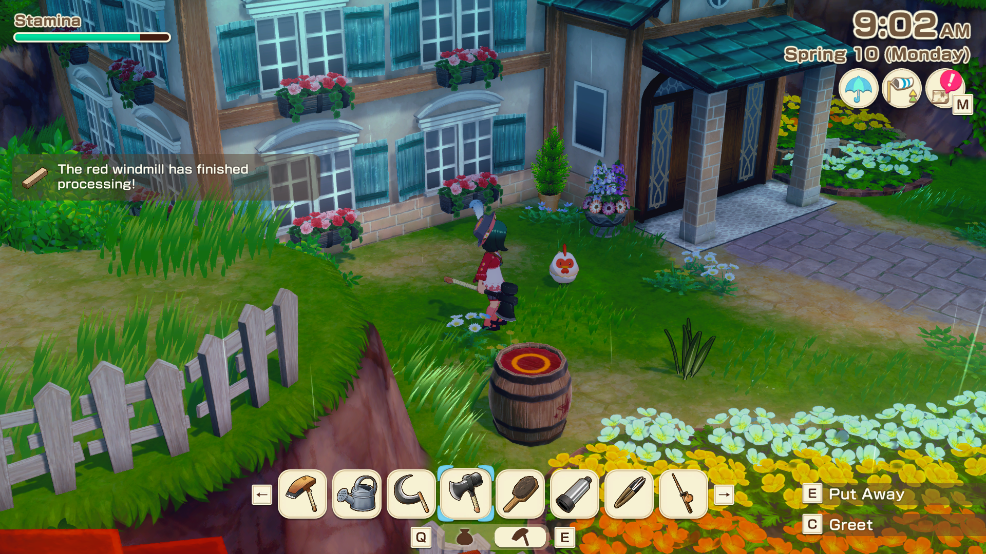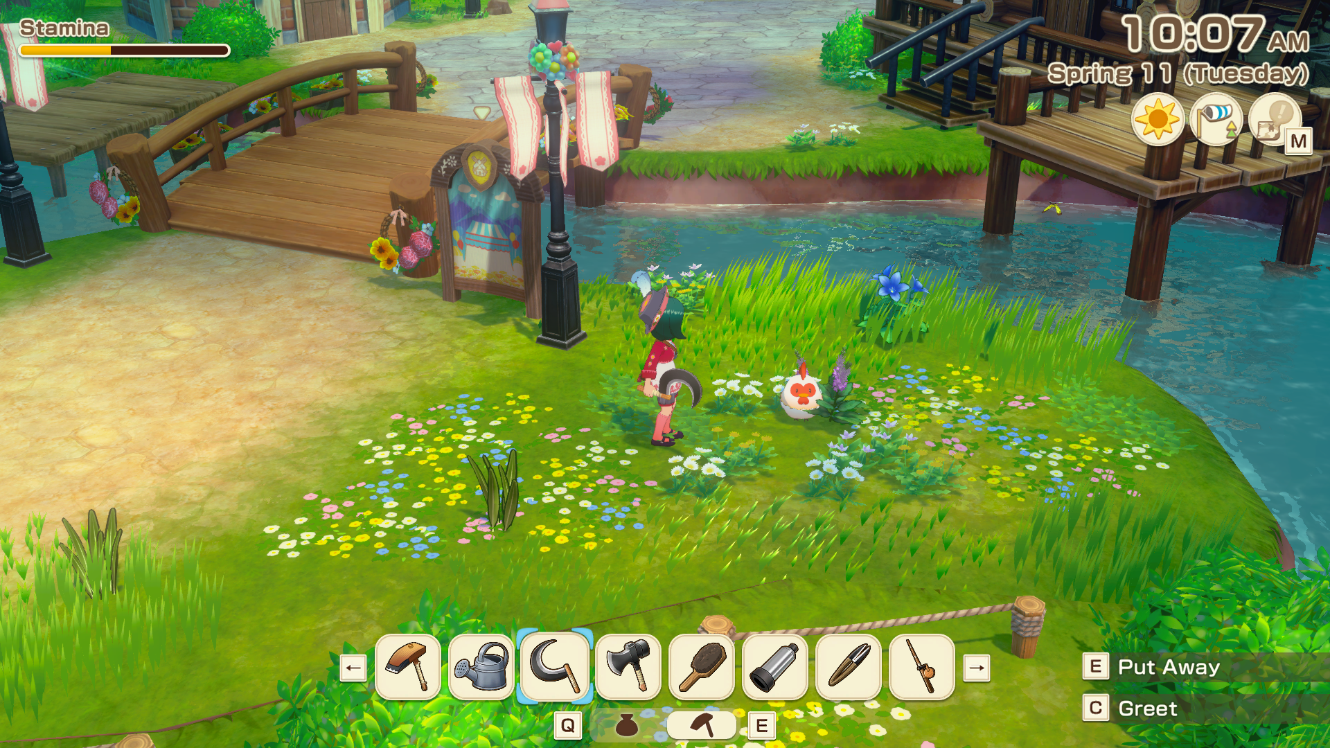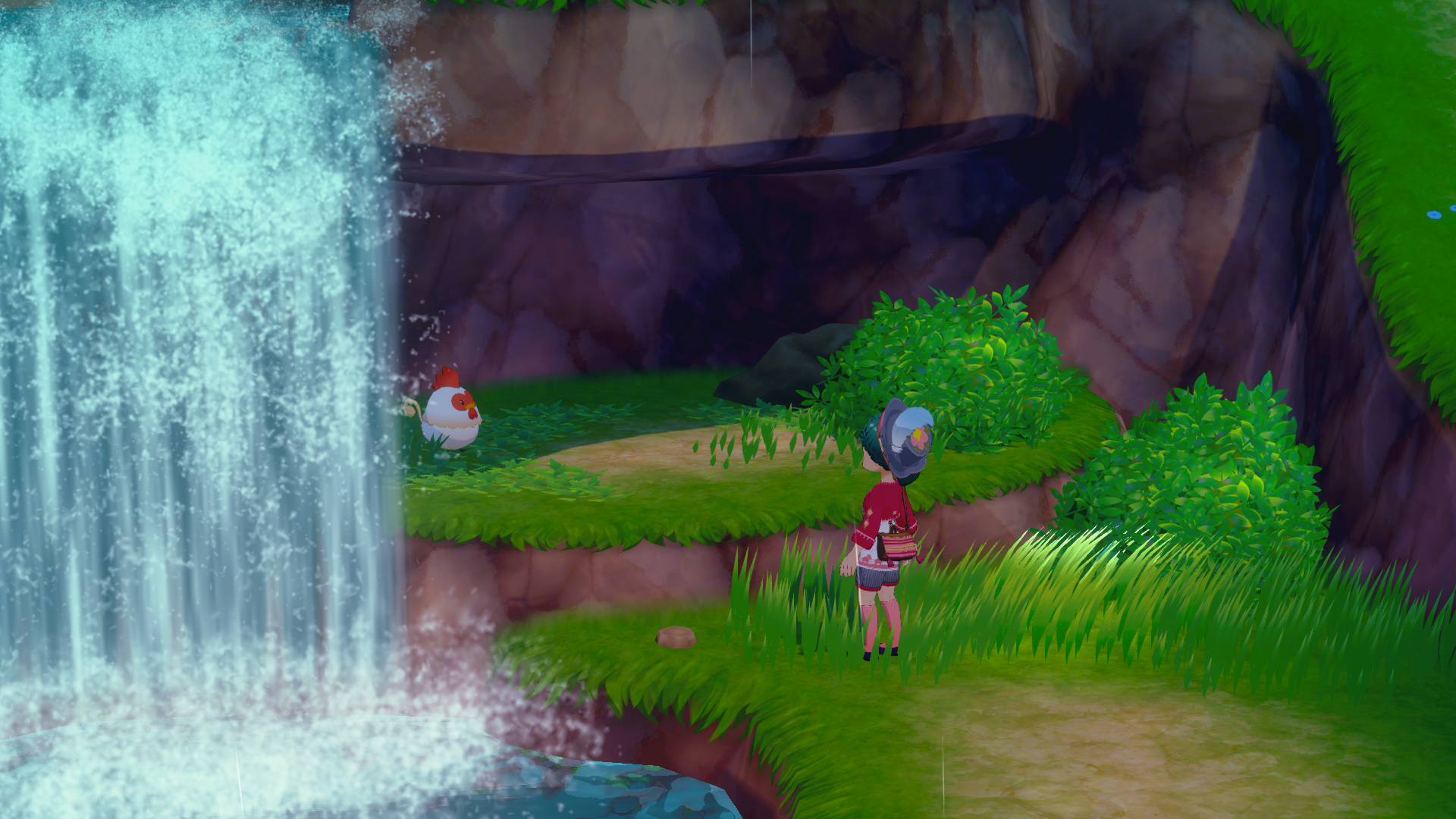 The initial chicken can be spotted at the waterfall, located to your left as you depart your farm and head into the town. It’s situated close to the large body of water on the western side.