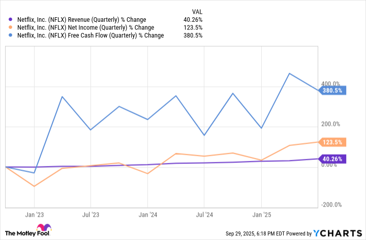 Netflix is the phantom limb of capitalism. It doesn’t ship boxes, build factories, or care about tariffs. It’s a digital phantasm, flickering across screens like a possessed VCR tape. But don’t let the “streaming” buzzword fool you-this is a beast with teeth. Its revenue? Growing like a weed in a nuclear fallout zone. Earnings? Climbing Mount Everest in flip-flops. Free cash flow? A rocket ship fueled by binge-watching and existential dread.