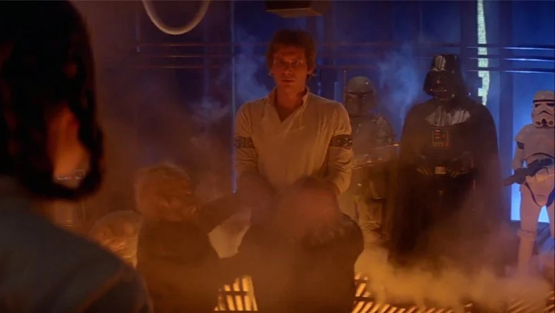 During the scene where Han Solo is frozen in carbonite on Cloud City, there’s a noticeable mistake: his jacket appears and disappears between shots. The change happens so quickly, within the same instant, that it’s easy to miss, but it’s definitely there if you look closely.
