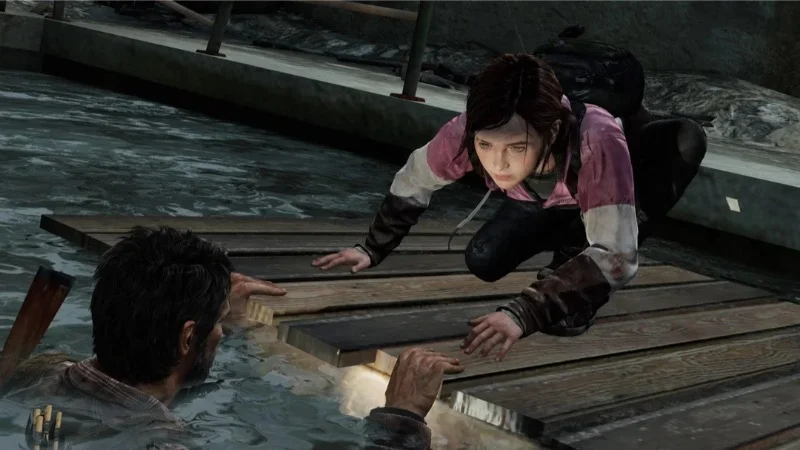 Ellie often travels across flooded areas using wooden pallets as makeshift rafts. These pallets are found throughout the water, allowing her to move forward even in places where it’s unclear why so many floating platforms are present.