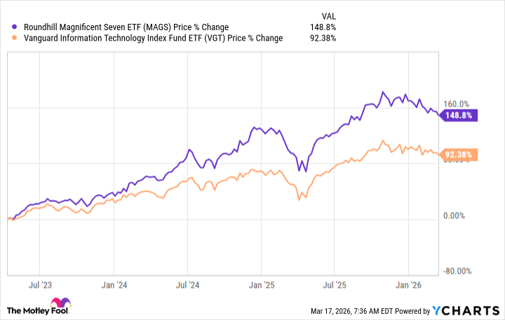 Wall Street, as ever, displays a regrettable susceptibility to collective delusion. One recalls the Nifty Fifty, those supposed pillars of the market, confidently predicted to ascend indefinitely. They did not, of course. A similar air of self-satisfaction now clings to the so-called Magnificent Seven, a grouping tracked by the RoundHill Magnificent Seven ETF (MAGS 1.52%). Before one is swept up in this latest iteration of optimistic folly, a degree of circumspection is advisable. A more sensible course might be the Vanguard Information and Technology ETF (VGT 1.04%). The details, as always, are tedious, but necessary.