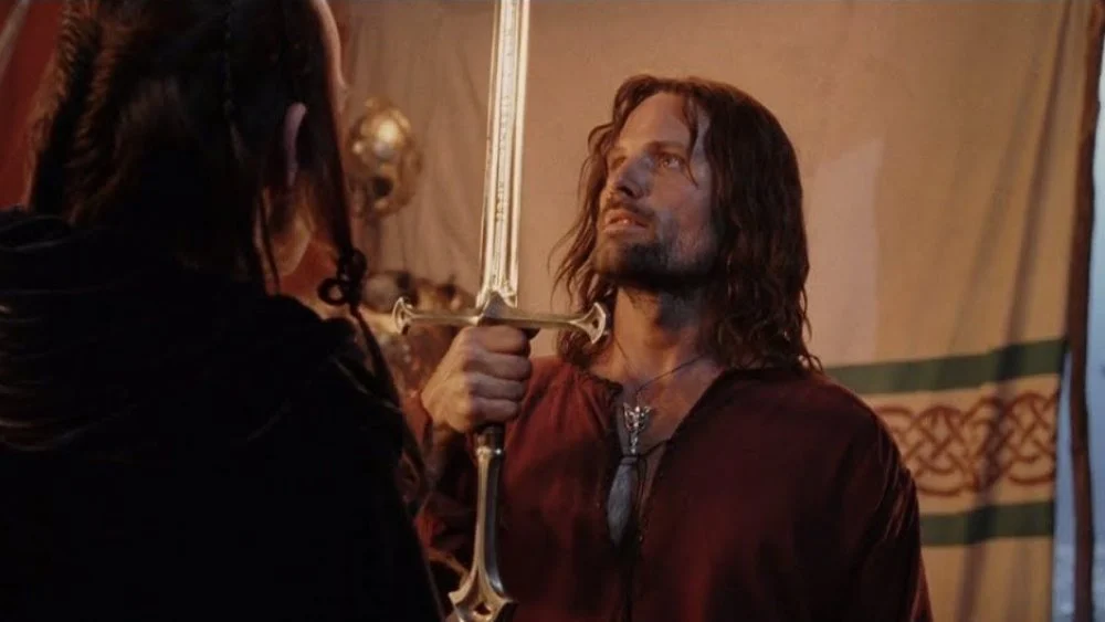 Andúril isn’t just a powerful sword; it’s a symbol of kingship. Its history commands respect from both Elves and Men, inspiring loyalty and helping Aragorn assert his rightful authority when leading armies, securing safe passage, or calling upon old alliances.