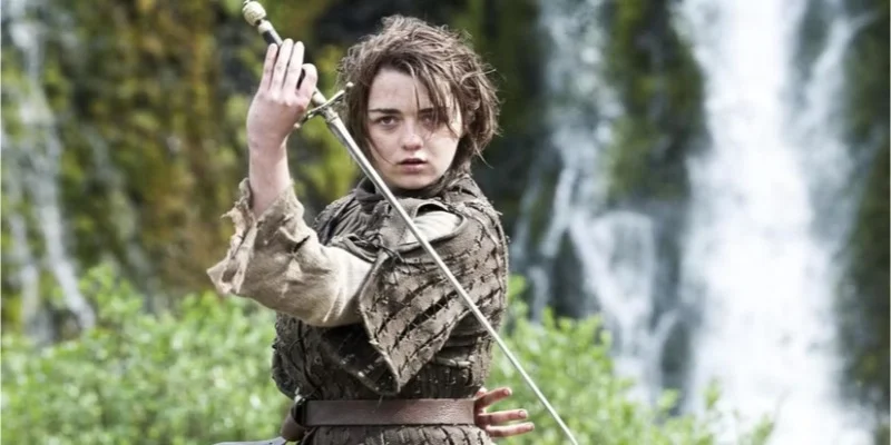 At Winterfell, Arya is given Needle, a small sword perfectly sized for her. Soon after, she starts learning a unique fighting style called “water dancing” with Syrio Forel in King’s Landing. This Braavosi technique emphasizes balance, agility, and accuracy, fitting both the slender blade and Arya’s nimble movements. She learns to find weaknesses in opponents and attack with the tip of the sword, rather than relying on its edge.