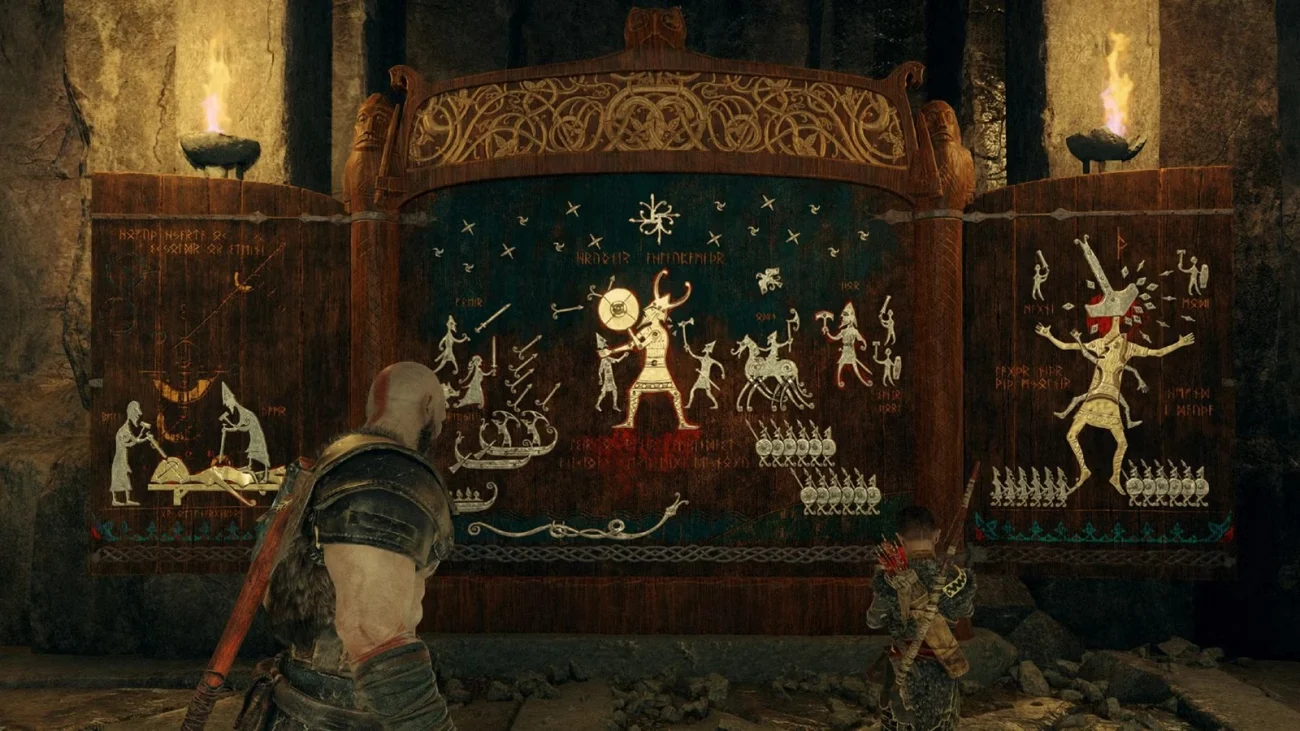 The story reveals that Atreus is actually Loki, connecting him to ancient Norse predictions and murals created by Giants. These murals act like readable records of the future, which he can understand, and they drive the game’s storylines based on his decisions, not predetermined fate.