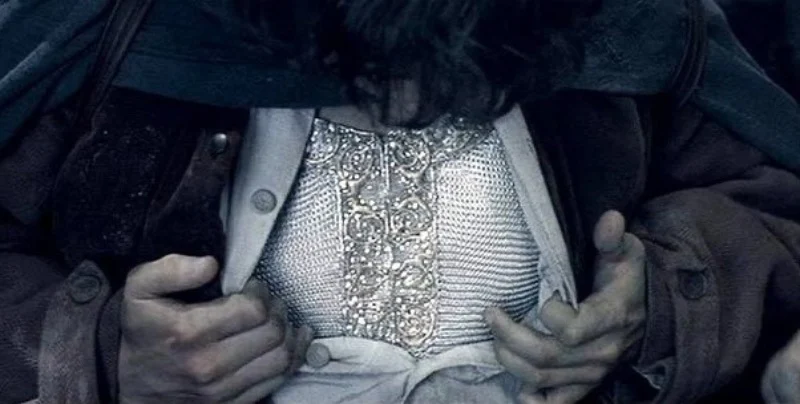 The shirt causes problems when orcs find it, leading to arguments about its importance. They mistakenly believe it means a halfling has been captured, which changes their plans around Cirith Ungol. Meanwhile, the hidden armor serves a dual purpose: it protects Frodo during fights and also drives the story forward by affecting how his enemies react to what he’s carrying.