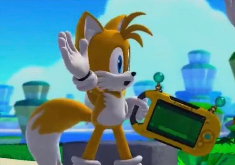 Tails carries a portable device called the Miles Electric, which works like a scanner and computer. It can analyze objects, pinpoint locations using signals, and decipher information from old ruins. Throughout the stories, it serves as a compact lab, taking the place of large computers. The device displays maps, mission markers, and system checks through on-screen prompts and cutscenes.