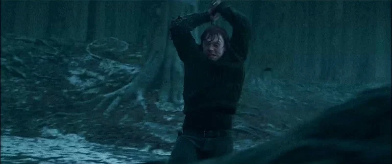 Ron pulls the Sword of Gryffindor from a frozen pond and uses it to destroy the locket Horcrux. The sword is special because it’s been coated in basilisk venom, which is one of the few things that can destroy these dark objects. Following Harry’s example, Ron dives into the water, grabs the sword, and destroys the locket as soon as it opens. This successfully eliminates one of Voldemort’s Horcruxes.
