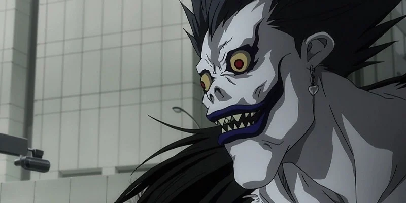 Ryuk is a death god who lives in a realm where time moves slowly and gods extend their lives by shortening human ones. Feeling bored with this unchanging existence, he decides to disrupt the human world by leaving a Death Note behind. Created by artist Takeshi Obata, Ryuk has a gaunt, skeletal appearance with bat-like wings, giving him a simultaneously creepy and mischievous look. The anime, produced by Madhouse, maintains this striking visual style through expressive animations and dynamic movement.