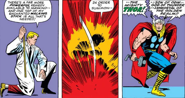 Initially, stories connected Thor to the doctor Donald Blake. This allowed Thor to change from a doctor with a staff into the hammer-wielding god, grounding him in a human experience. This setup naturally led to stories happening in medical environments – like hospitals – featuring rescues and ethical challenges related to treating patients and deciding who needed help first.