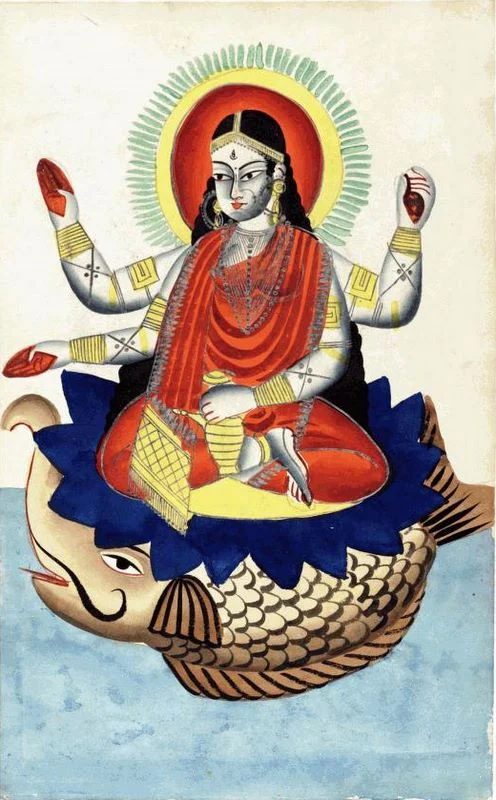 Airavata is a beautiful white elephant and the special mount of Indra, the king of the gods. Stories often depict him with many trunks or heads, symbolizing great power and his royal status. According to myth, he came into being when the cosmic ocean was churned, creating all sorts of divine treasures. Today, elephants are featured in festivals as a reminder of Airavata’s role in bringing rain and good fortune.