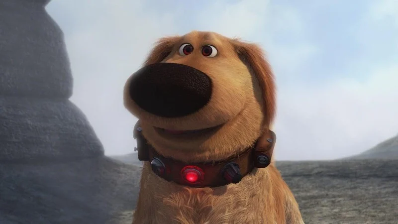 Dug is a golden retriever who wears a special collar that lets you hear what he’s thinking. The creators at Pixar recorded his voice to perfectly match his expressions and movements in the film. Walt Disney Pictures released the movie. Dug was designed with soft, rounded shapes and realistic fur to look great in 3D.