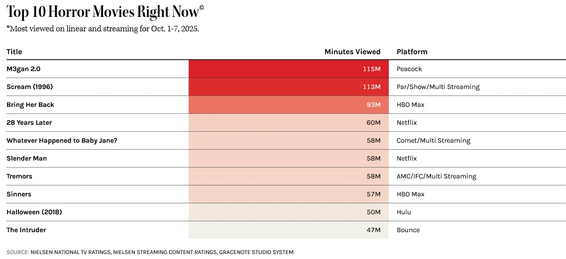From October 1st to 7th, 2025, horror fans enjoyed spooky content on both regular television and streaming services.