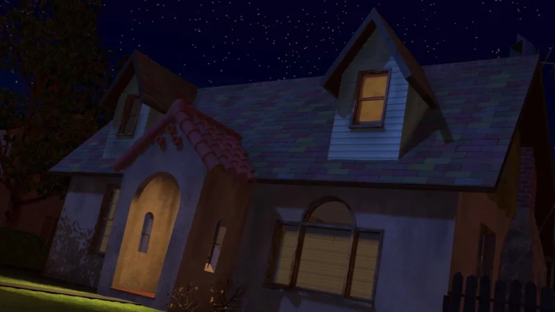 Throughout the scenes at Sid’s house, small details in its appearance subtly change. For example, a window might have extra bars one moment and not the next. The porch light seems to shift position, and the height of the fence posts near the sidewalk varies as the toys run away. These are minor inconsistencies in the background.