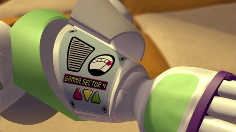 Buzz’s wrist communicator seems inconsistent in the footage. The designs on it – the colors, buttons, and small details – shift around depending on the camera angle. The screen’s brightness also fluctuates even though the lighting doesn’t change. And sometimes, the way the communicator folds up looks different, almost like it’s a different size.