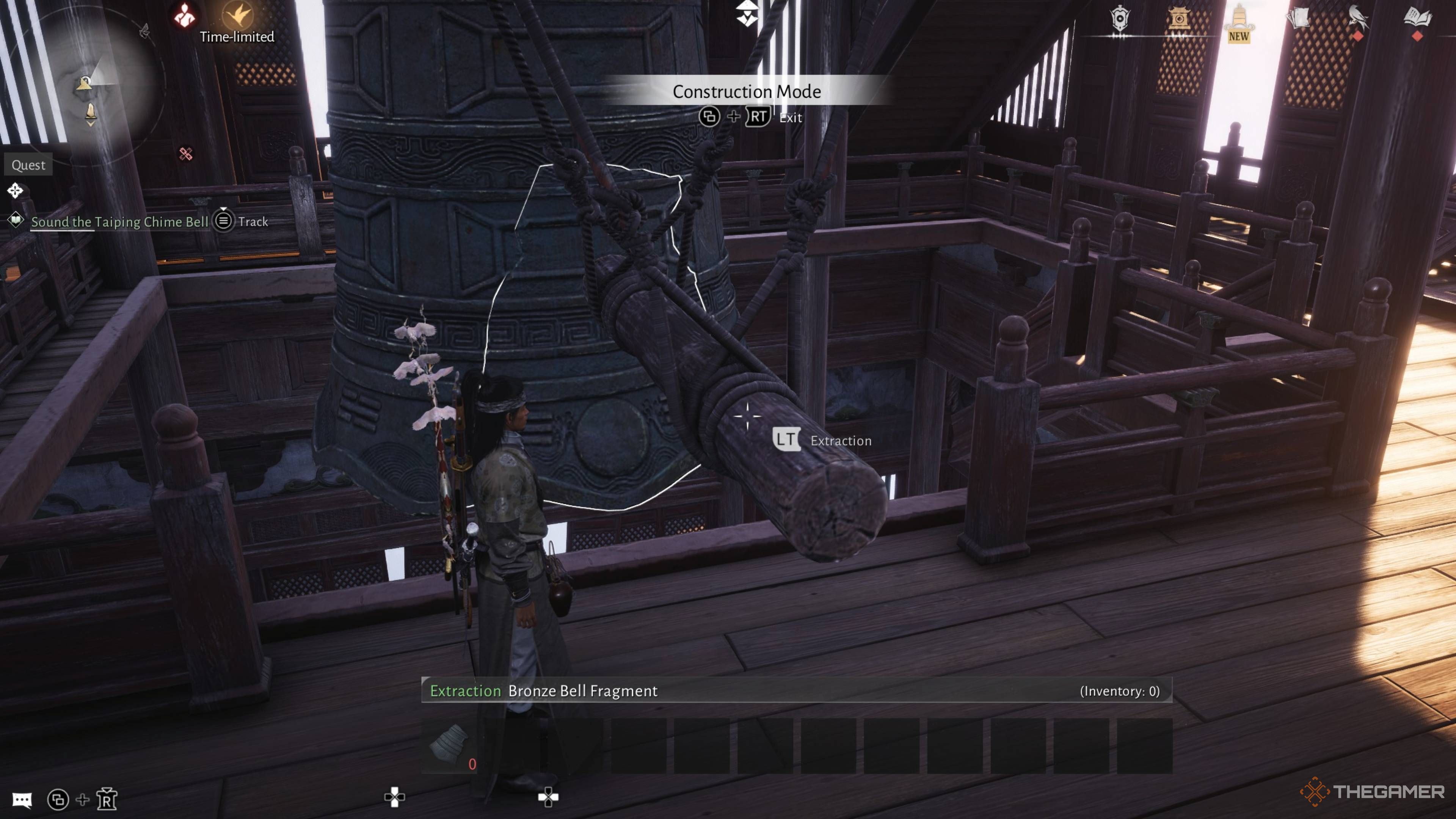 Fixing the Demoncalm Bell is straightforward, but a little different than usual. Instead of simply repairing it, you need to use Construction Mode and place the Bronze Bell Fragment directly into the bell. When you try to repair it normally, it will automatically open Construction Mode for you.