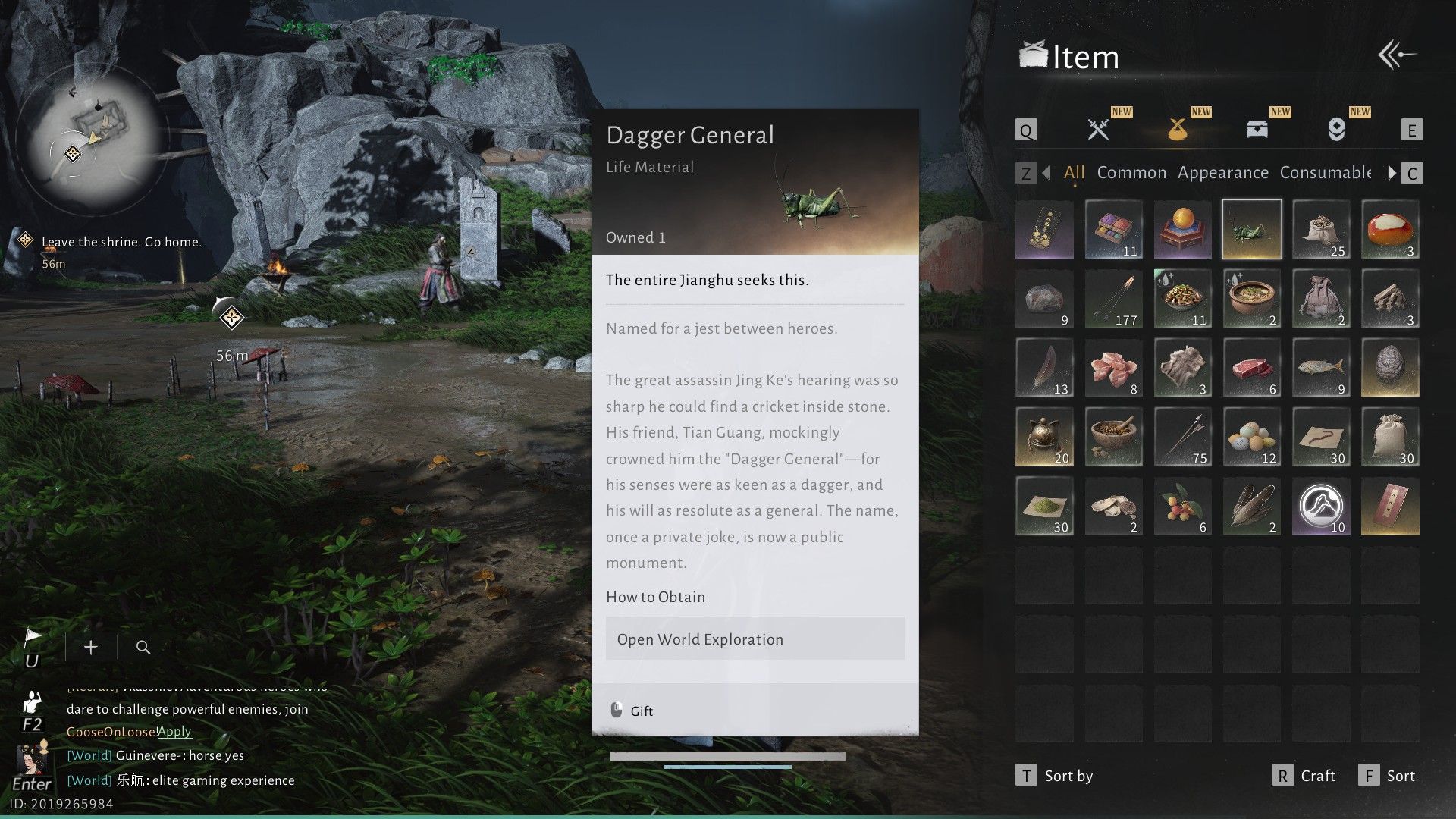Players can find unique collectibles called Oddities while exploring the Qhinghe region. Each Oddity has a specific way to be collected. For instance, the Dagger General (represented by grasshoppers) are hidden and require players to break rocks or boxes to find them. The Enchanting Lotus is protected by clouds of Miasma, and players must destroy the surrounding Purple Butterflies to collect it.