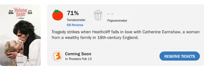 Emerald Fennell’s new take on “Wuthering Heights” is receiving a somewhat mixed response from critics. Currently, the film holds a 71% rating on Rotten Tomatoes, up from an initial 66%. While the reaction seems to be improving, opinions are still fairly split.